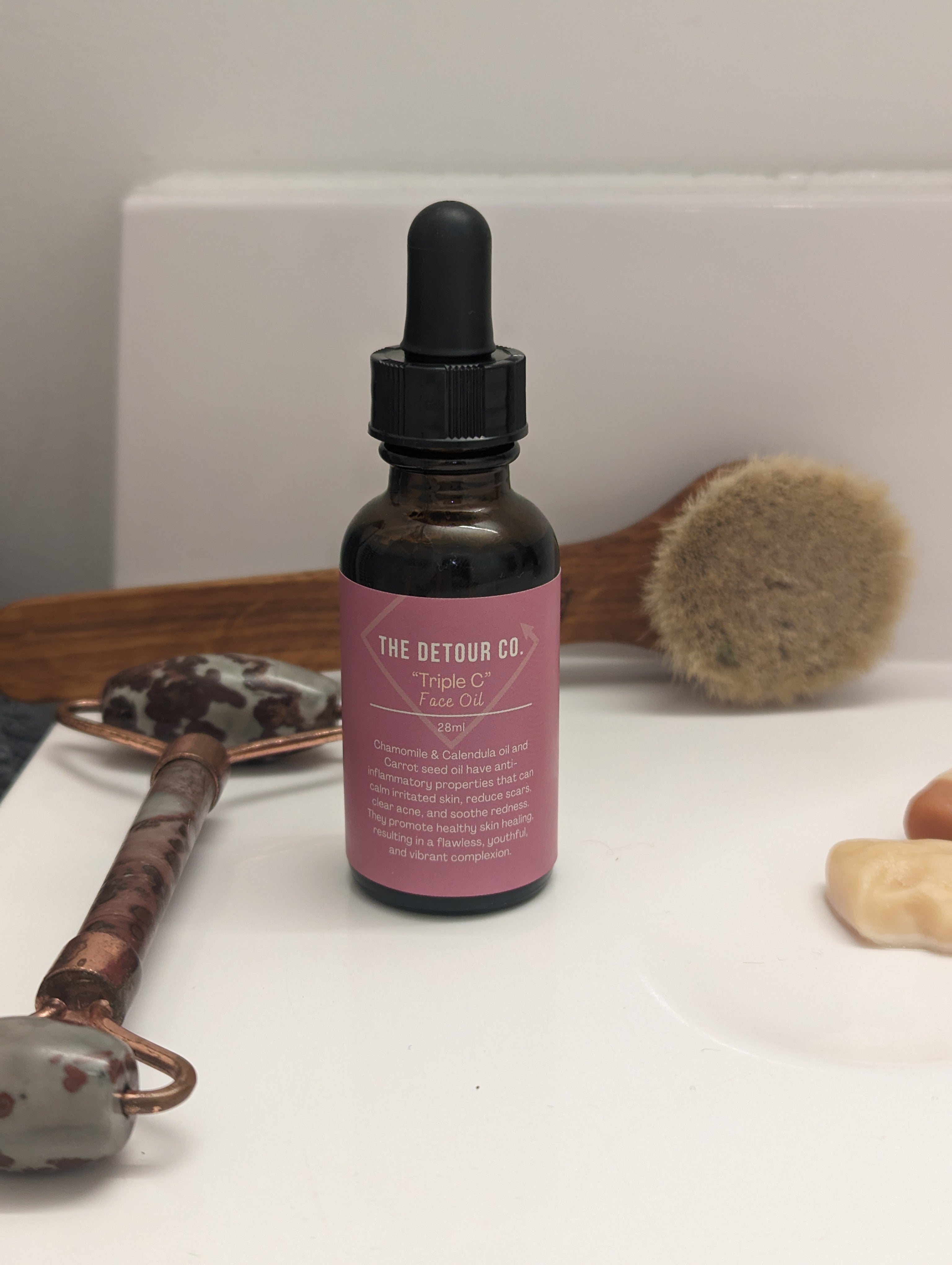 Acne, blemishes, scarring, redness, rashes. These are all-too-common, can lead to insecurities and even destroy our confidence. The Detour Co Chamomile infused face products want to help, twofold. Not only are these products designed to support the healing of common skin imbalances and damage, but in doing so, we hope you're able to love the reflection you see looking back at you. Repair your skin. Repair your relationship with yourself.