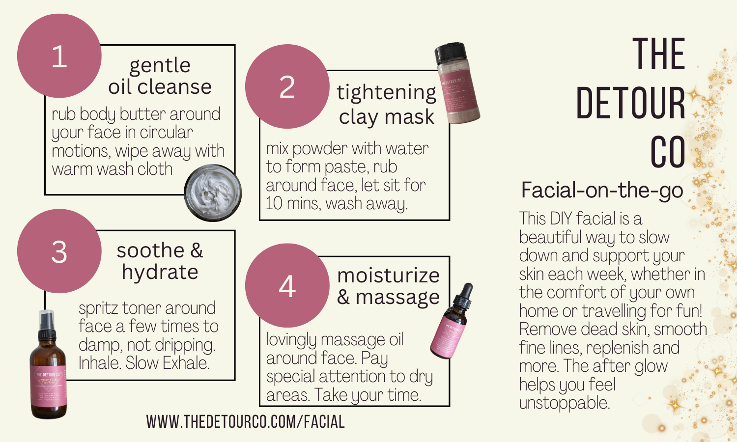 The Detour Co. prioritizes earth-grown ingredients from the land, not from the lab. We are dedicated to helping women fall more in love with their skin through easy and effective skincare routines.Â